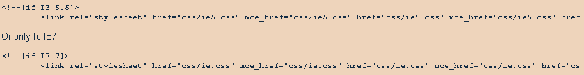 ونجد بهنا بأنه تم اضافة جملة بين القوسين () وهي تخصيص معين عن المتصفح إنترنت أكسبلورو 5.5 أو مثلا 7 ..وأسفلها تكتب جملة css أو تحدد مسار ملف css الذي بيه الخصائص المطلوب التخصيص لها بهذا المتصفح ..
